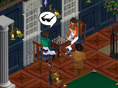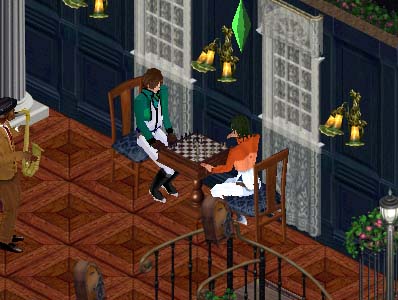 チェス勝負に白熱する中,現れたるサックスプレイヤー。