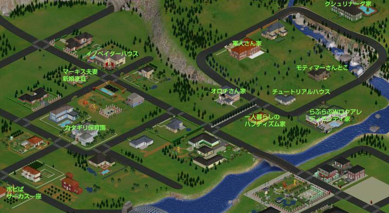 ということで、色んな家族を作って引越させたので、改めてメインデータの御近所マップです。