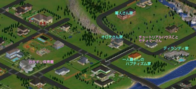 カタギリさんとこがちょっと遠いのは、自分で1から建築する自信がなかったので、安い物件を買って改築した為。軍人さんとハレルヤのとこは自分で建築したのでセンスない……まぁ、メインのディランディ家も安い物件を買って改築しまくってるのですが。