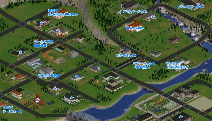 星印は空き家。何もないところは共有地区かデフォで入ってる家族の家です。