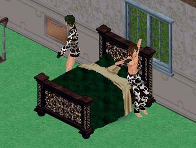 これはこしてきてすぐの日。ケダモノは子供スキンなので、引っ越して早々学校に行きました。今いるのはまだ仕事が決まってないパピー(この後サーカスの仕事に決定)と仕事に行く前のポピー(動物関係の仕事)。