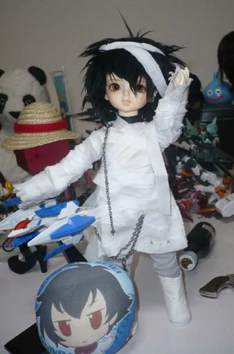 昨日の夜、風が冷たいのにも関わらずノースリーブで網戸しかしめてない状態で夜中までガンプラ作ってた所為か、ちょっと体調が思わしく感じず、朝イチでららぽ行く筈が、ギリまで布団でゴロゴロしてた。ご飯食べる余裕もなく、漢方薬飲んでからダイエットプロテインで朝ご飯にしてららぽに出発。行く途中で薬局でドリンク剤と、念のためにマスクを買って行きましたが、電車を乗り逃しの連続で、既に開店時間になっちゃいました。先着だから、下手するとないかも……店に入ってすみか列の最後尾に並んでおりますと、数は割と入ってたらしいですが、SD少年サイズの服(勿論SD少女や13少女も着れる)がなくなっている以外は、自分の番が来たときは1着以上は残ってて、目的の幼っこミイラセットも余裕でした。他、シスターセットも可愛いなとは想いましたが、まだうちには幼っこの女の子はいないので我慢。DD服も、個人的の欲しかった猫セットはM胸専用だし、MDDの服はかなり悩んで断念。結局当初の予定通りミイラセットだけ買いました。