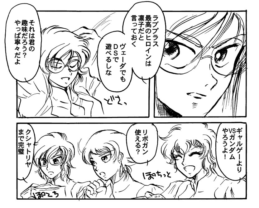 ライアレ本はこの休み中にコピー、製本まですませてしまうつもりです。まだ表紙デザインが決まってないんですけどね。イノベの方はコンテが終わってした書きしています。4頁法を使って8頁、トーンとか殆どやらない筈だから、何とか……ただ、8頁びっしり漫畫を描いてしまっている為、奥付も何も入れられないので、強引に評しつけて12頁にするかもしれない。ノリは浦鉄です、相変わらず。今回は、ちゃーんと原稿用紙に下書きしてるよ!ちゃんとつけペンでスミイレしますよ!イノベはベタが少ないからなぁ……最悪、スミイレ>効果線と文字いれ>出力してコピック処理>コピーの段階を踏むかも。トーンデータ合成の方が時間食いそうなんだもん。出来るだけ前倒しで行きます。この土日でペン入れまで完成させれば何とか。