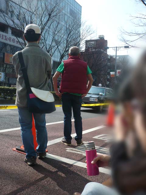 前回の失敗を考慮し、スタート地点から時計回りに少し進んだあたりに陣を構え、始まるまでは取り敢えず近くの歩道の近くに座ってまっていましたが……この時、自分の目を見はった姿のおじいさま(おじさま?)が!
