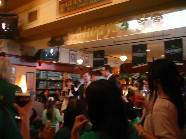 自分達の近くに丁度アイリッシュ系の人か、アイルランド関連で仕事をしている人達がいたようで、彼らがかなり色んな人達に絡まれていました。